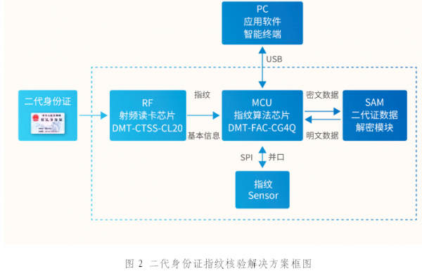 大唐微電子已開發(fā)出完整的二代身份證指紋核驗解決方案,方案由軟件和硬件兩部分組成:硬件方面包括自主研發(fā)的射頻讀卡芯片DMT-CTSS-CL20、指紋算法處理芯片DMT-FAC-CG4Q及208*288pixels電容式傳感器DMT-FS-PB4F;軟件方面主要是指紋比對算法,目前,大唐微電子正積極和入圍的廠商合作。