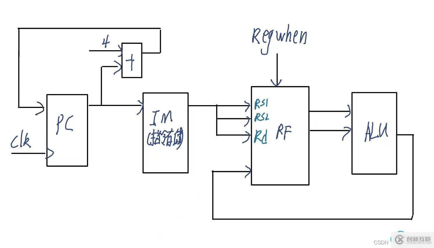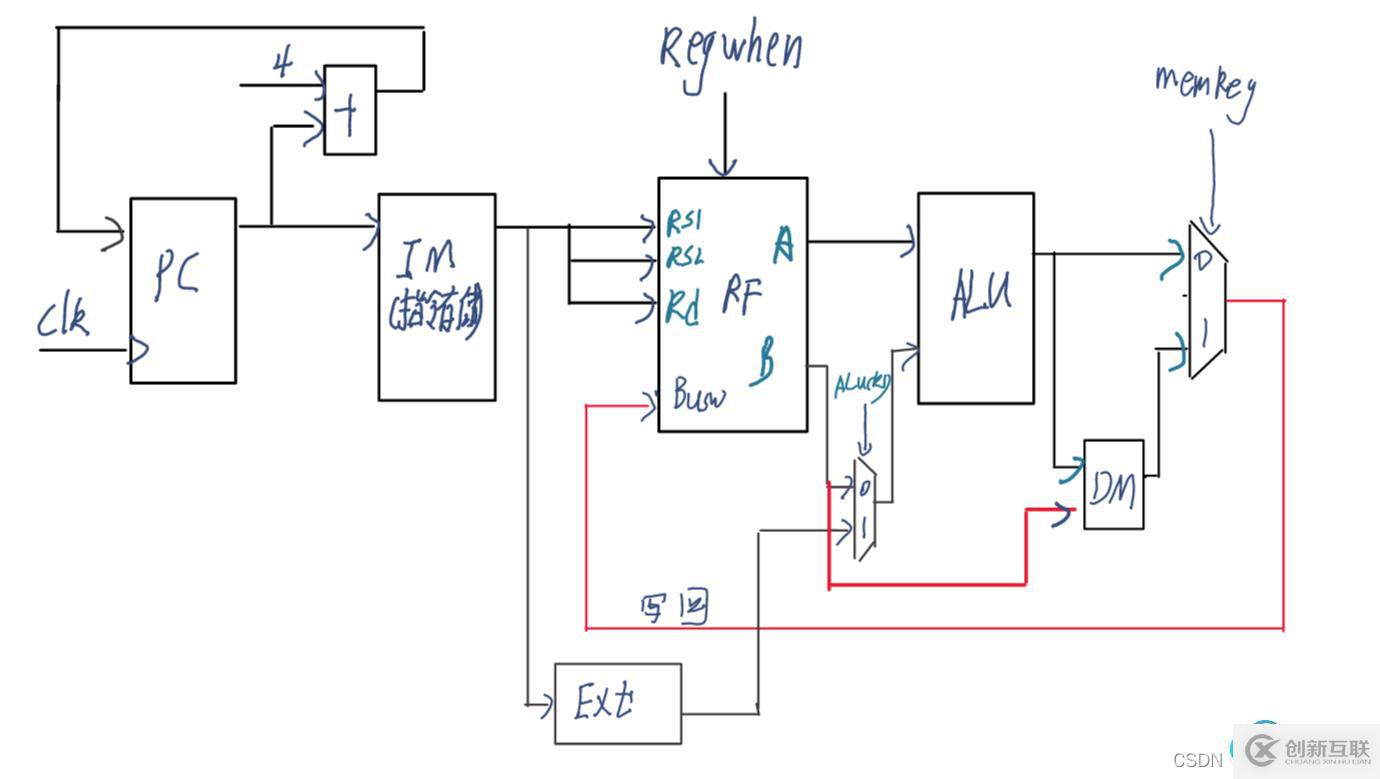 ALU:運(yùn)算單元,輸入兩個(gè)寄存器中的數(shù)據(jù),通過ALU運(yùn)算,將計(jì)算結(jié)果寫回到Rd中。
