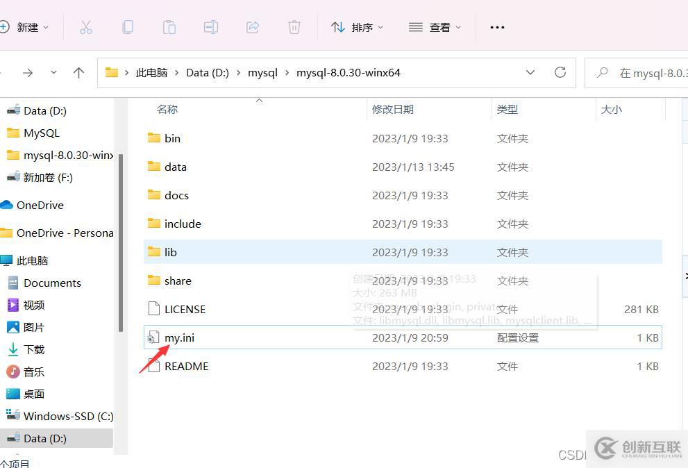 basedir=D:\mysql\mysql-8.0.30-winx64這里我的路徑就是當前MySQL下載到的路徑