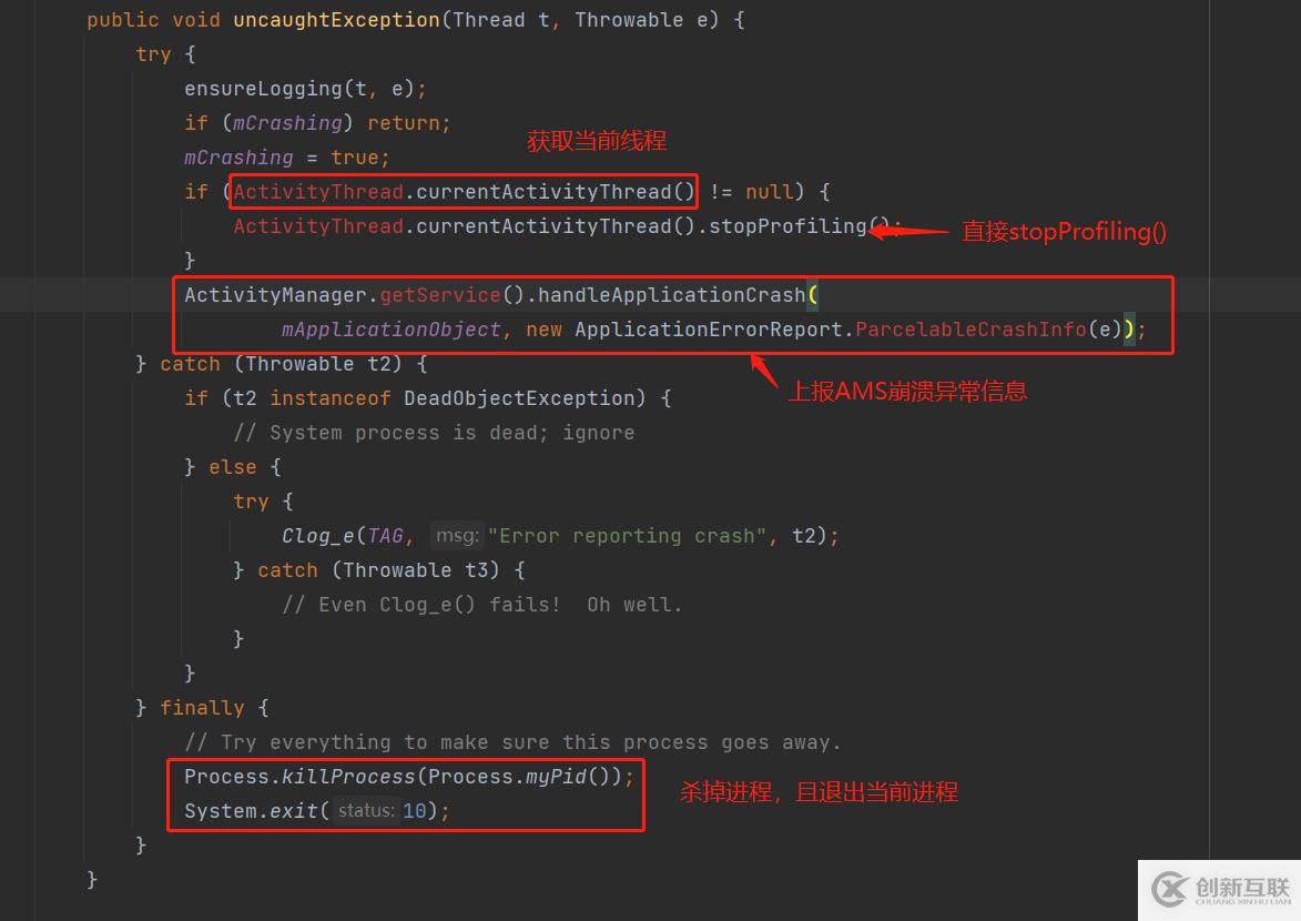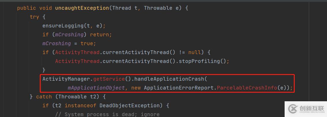 小總結(jié)在上面的源碼分析步驟7我們知道了,在KillApplicationHandler的uncaughtException()方法里,最終異常信息有一個(gè)AMS上報(bào)過程: