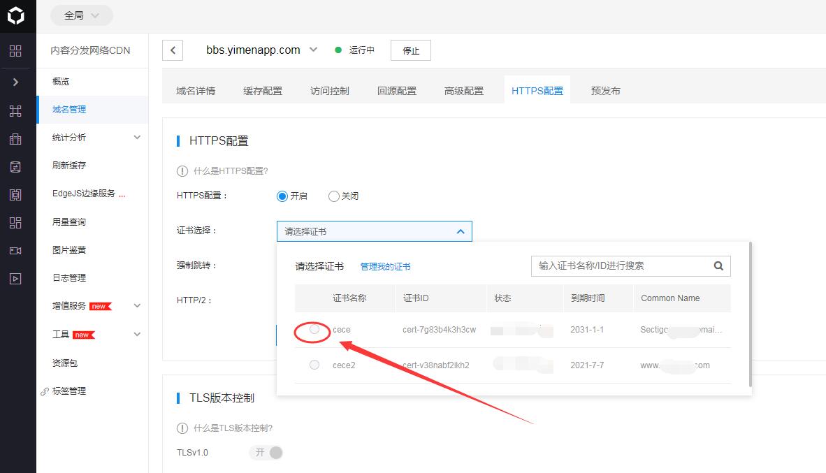 5,返回第四步,在證書管理里面選擇對應(yīng)的證書即可