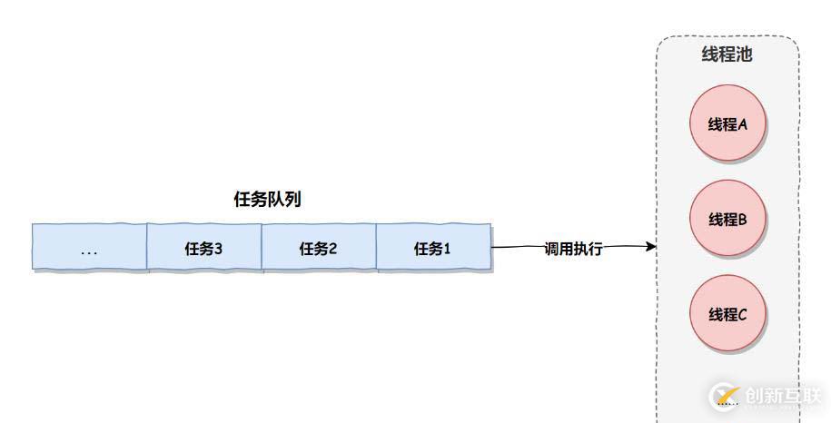 線程池相比于線程來說,它不需要頻繁的創(chuàng)建和銷毀線程,線程一旦創(chuàng)建之后,默認情況下就會一直保持在線程池中,等到有任務來了,再用這些已有的線程來執(zhí)行任務,如下圖所示: