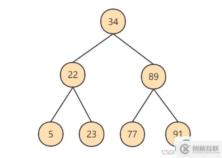 比如我們對數列(32,34,89,5,23,77,91)創(chuàng)造出來的二分查找樹如下: