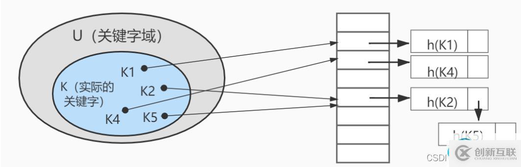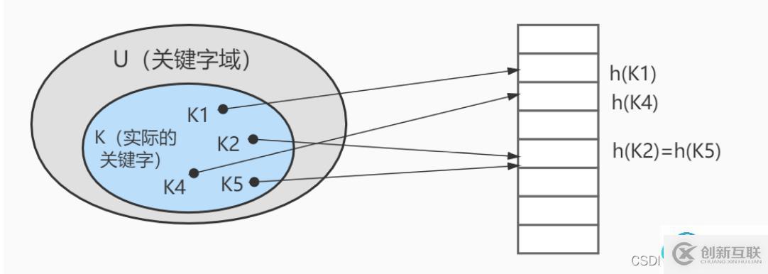 在Hash方式下,一個元素k處于h(k)中,即利用Hash函數h,根據關鍵字k 計算出槽的位置。函數h將關鍵字映射到哈希表 T[0...m-1]槽位上。