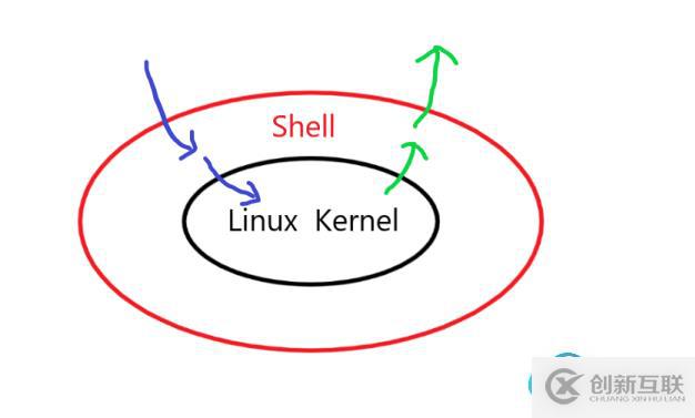 ??Linux嚴(yán)格意義上說的是一個操作系統(tǒng),我們稱之為“核心(kernel) “ ,但我們一般用戶,不能直接使用kernel。而是通過kernel的“外殼”程序,也就是所謂的shell,來與kernel溝通。如下圖,藍色箭頭表示用戶通過Shell與Linux Kernel 溝通,綠色箭頭表示 Linux Kernel 通過Shell 返回給用戶一些信息。