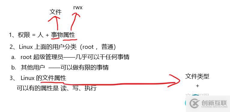 ? 3. 權(quán)限=人+文件屬性。 文件屬性=文件類型+文件權(quán)限。