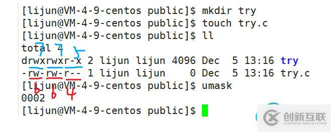 ? 從下面也可以看出,普通用戶lijun 新建一個文件夾try,和文件try.c,可以看出其權(quán)限發(fā)呢別是775和664,和默認(rèn)權(quán)限777、666 相比,w權(quán)限都被去掉了。然后使用umask指令查看其掩碼,確實是0002.?