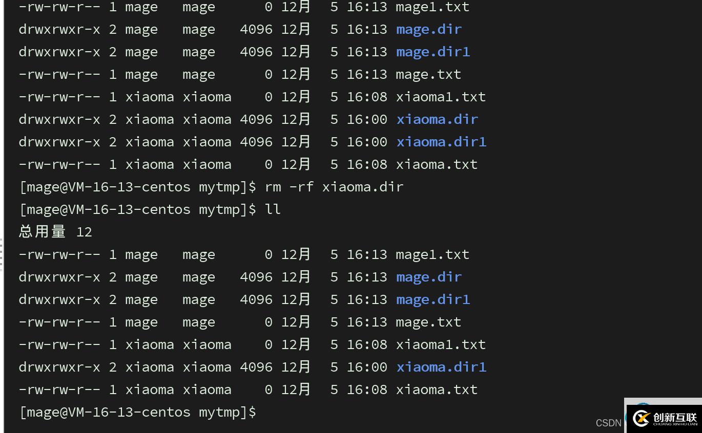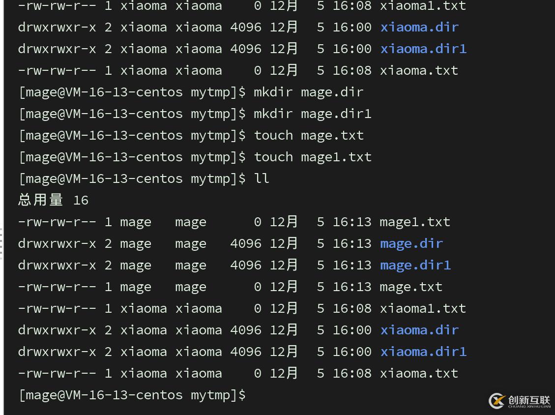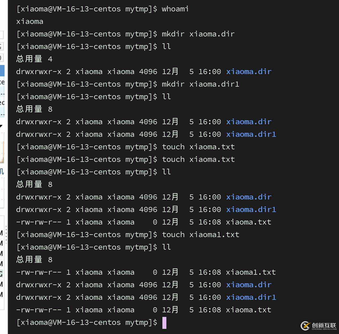 這樣我們都可以在目錄里進(jìn)行創(chuàng)建文件了 ,看我們創(chuàng)建的文件的所屬組和擁有者都是xiaoma