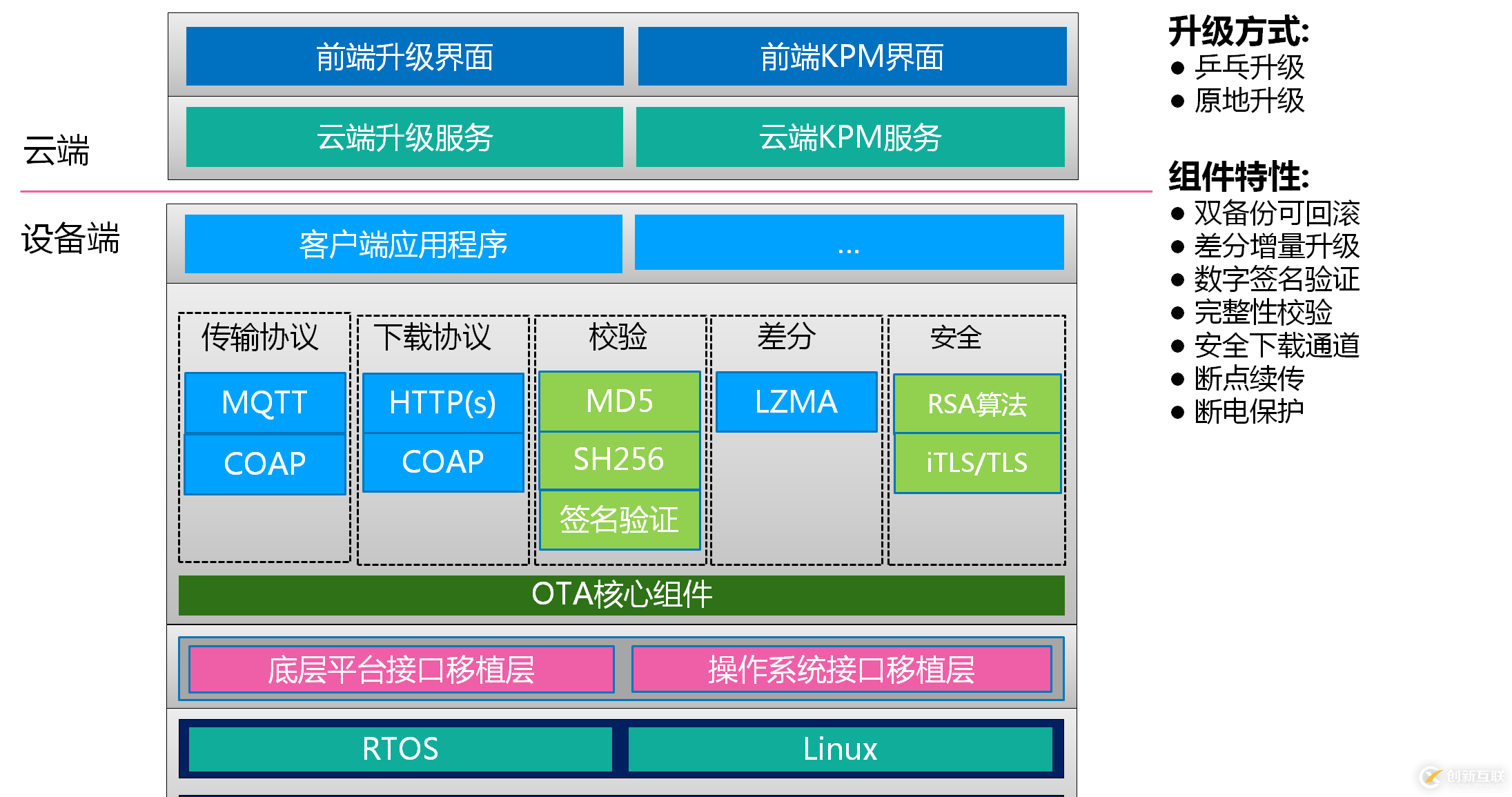 隨著物聯(lián)網(wǎng)的日益發(fā)展,OTA升級(jí)逐漸成為物聯(lián)網(wǎng)設(shè)備的剛性需求,目前物聯(lián)網(wǎng)設(shè)備種類(lèi)繁多,但并未提供統(tǒng)一的OTA升級(jí)方案,針對(duì)日益發(fā)展的物聯(lián)網(wǎng)設(shè)備,開(kāi)發(fā)者迫切需要一套云端一體化的OTA升級(jí)方案來(lái)滿(mǎn)足快速迭代的產(chǎn)品開(kāi)發(fā)周期,降低產(chǎn)品開(kāi)發(fā)和部署的成本,同時(shí)針對(duì)物聯(lián)網(wǎng)低功耗和省流量的場(chǎng)景,AliOS