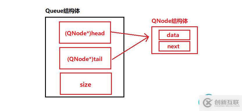QNode* tail;//指向?qū)ξ? int size;//數(shù)據(jù)個(gè)數(shù)(隊(duì)列長度)