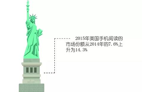 據(jù)尼爾森統(tǒng)計(jì):2015年,美國電子書的市場份額為24%,2014年是27%。但是,手機(jī)閱讀的份額從2014的7.6%上升為2015年的14.3%。