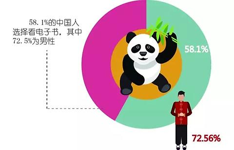 中國在數(shù)字化閱讀領(lǐng)域發(fā)展勢頭迅猛,58.1%的中國人選擇看電子書,平均每人電子書閱讀量3.22本,手機(jī)閱讀人均花費(fèi)16.47元。