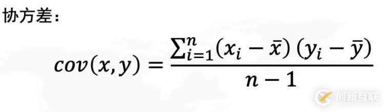 首先回顧一下協方差的概念,協方差代表的是兩個變量變化的一個相關程度,如果x增大,y也增大,則成為正相關;反之,則為負相關,而這個相關的程度,就是協方差。x和y的協方差用cov(x,y)表示,正相關時,cov(x,y)>0;負相關時,cov(x,y)<0,不相關則為0。順便一提,變量自己和自己的協方差,就是方差,即cov(x,x)=var(x)