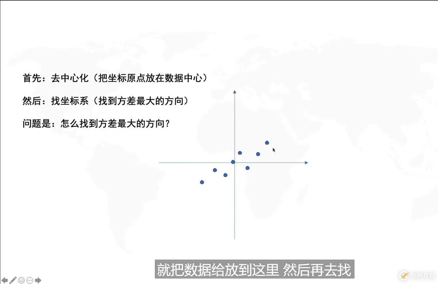 1. 去中心化? 首先,要將數據去中心化,即將坐標原點放在數據中心。若不執(zhí)行去中心化,就會出現這種現象:
