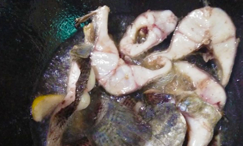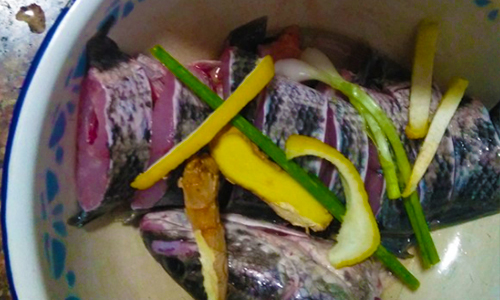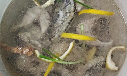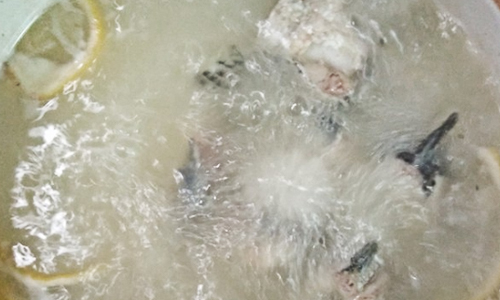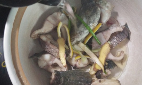 準(zhǔn)備材料:白烏魚600克、姜3片、蔥2根、檸檬皮5根、料酒1勺 1、首先準(zhǔn)備好需要的材料,如下圖所示: 2、加料酒蔥姜容檸檬片腌制10分鐘去腥,如下圖所示: 3、鍋中倒油炸一下烏魚,如下圖所示: 4、肉質(zhì)發(fā)白即可,如下圖所示:? 5、撈出放入砂鍋里,如下圖所示:? 6、加姜檸檬皮蔥,如下圖所示:? 7、然后加開水,如下圖所示:? 8、先大火燒開,如下圖所示:? 9、在中小火燉30分鐘即可,如下圖所示:? 10、最后加些檸檬皮即可食用了,如下圖所示:? |