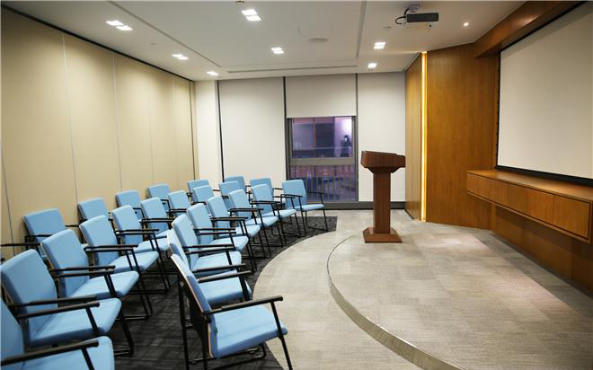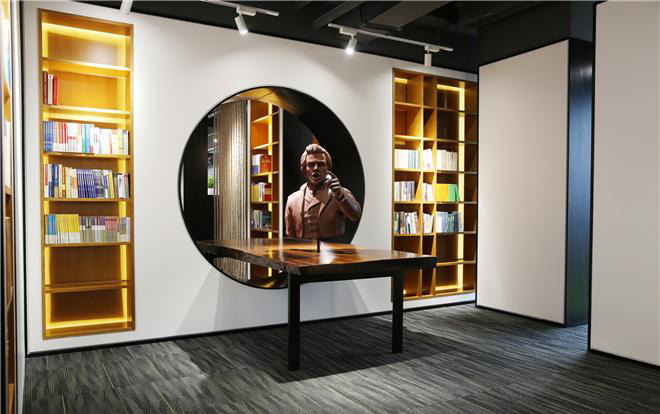 在空間布局上著重考慮書(shū)院空間的打造,整個(gè)書(shū)院以“月亮門(mén)“的使用為主線貫穿始終,并營(yíng)造出前后錯(cuò)疊的空間進(jìn)深感,讓參觀者有序自由的參觀整個(gè)書(shū)院,書(shū)院與對(duì)外接待的會(huì)客室聯(lián)通一體,并且會(huì)客室的房名以不同的法律名詞命名(例如:民-定分),即明確出每個(gè)房間的不同功能,又不失文化特色;自始至終都讓來(lái)訪者游走在法律知識(shí)的空間內(nèi)。