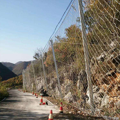 被動防護網(wǎng)由鋼絲繩網(wǎng)或環(huán)形網(wǎng)(需攔截小塊落石時附加一層鐵絲格柵),