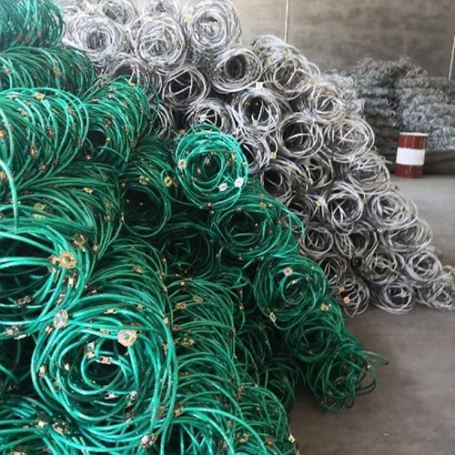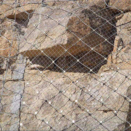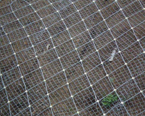 動(dòng)防護(hù)網(wǎng)由鋼絲繩網(wǎng)或環(huán)形網(wǎng)(需攔截小塊落石時(shí)附加一層鐵絲格柵),