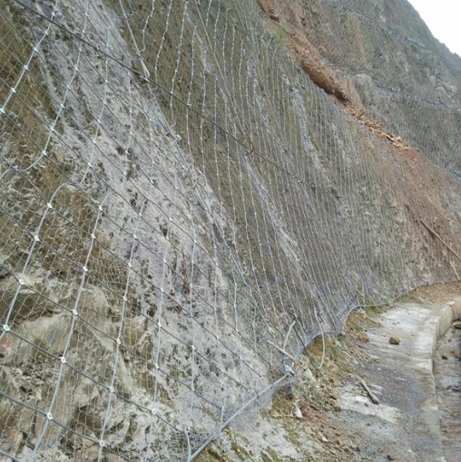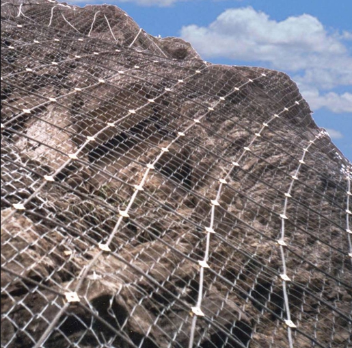 主動防護(hù)系統(tǒng)是一種柔性網(wǎng),用鋼絲繩網(wǎng)覆蓋并包裹所需的防護(hù)坡度或巖石,以限制坡面巖石和土壤的風(fēng)化,剝落或損壞,以及巖石崩塌(加固),或控制落石在一定范圍內(nèi)運(yùn)動(外殼功能),它是一種靈活的防護(hù)網(wǎng)。