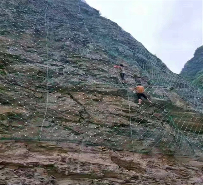 5、包塑邊坡防護網(wǎng)是采用熱鍍鋅鋼絲繩等材料制作而成,具有較長防腐壽命,延長坡面有效防護使用壽命。