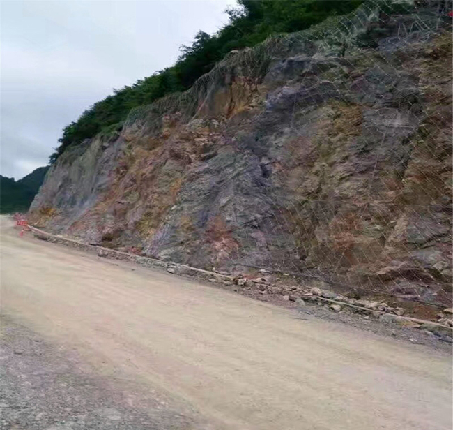柔性防護(hù)網(wǎng)系統(tǒng)能將工程隊(duì)環(huán)境的影響,其防護(hù)區(qū)域可以充分的保護(hù)土體、巖石的穩(wěn)固,便于人工綠化,有利于環(huán)保。主動防護(hù)網(wǎng)結(jié)構(gòu)配置:鋼絲繩網(wǎng)、鋼絲繩錨桿、支撐繩、縫合繩、鋼絲格柵網(wǎng)。柔性防護(hù)網(wǎng)柔性系統(tǒng)的開放性,其開放特征給隨后或今后有條件并需要時實(shí)施人工坡面綠化保留了必要的條件。