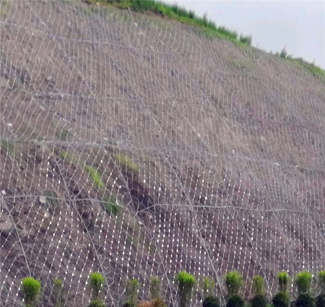 SNS邊坡防護網(wǎng)是通過錨桿和支護繩索對每個網(wǎng)塊施加預(yù)緊力,使每個網(wǎng)塊在坡面上張拉,然后對坡面危巖落石施加一定的預(yù)緊壓力,從而提高危巖的穩(wěn)定性。性,防止危險落石的發(fā)生。.系統(tǒng)各部件相互連接,集成在各獨立保護區(qū)內(nèi)。一旦巖體發(fā)生局部變形或位移,系統(tǒng)將不再局部工作,而是整體工作。