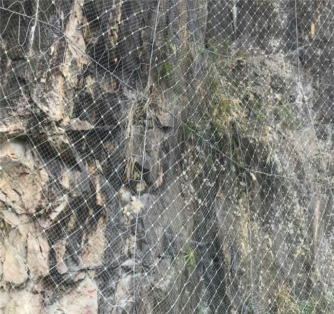 主動(dòng)防護(hù)網(wǎng)系統(tǒng)是用以鋼絲繩網(wǎng)為主的各類柔性網(wǎng)覆蓋或包裹在需防護(hù)的斜坡或巖石上,以限制坡面巖土體的風(fēng)化剝落或破壞以及危巖崩塌,起到加固作用和圍護(hù)作用。