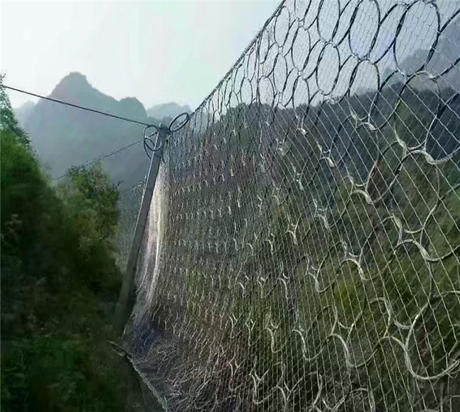 被動防護(hù)是由鋼絲繩網(wǎng)、環(huán)形網(wǎng)、(需攔截小塊落石時附加一層鐵絲格柵)、固定系統(tǒng)(錨桿、拉錨繩、基座和支撐繩)減壓環(huán)和鋼柱四個主要部分構(gòu)成。鋼柱和鋼絲繩網(wǎng)連接組合構(gòu)成一個整體,對所防護(hù)的區(qū)域形成面防護(hù),從而阻止崩塌巖石土體的下墜,起到邊坡防護(hù)作用。材質(zhì):鋼絲繩網(wǎng)、支撐繩和減壓環(huán)。構(gòu)造:由鋼絲繩網(wǎng)或環(huán)形網(wǎng)(需攔截小塊落石時附加一層鐵絲格柵)、固定系統(tǒng)(錨桿、攔錨繩、基座和支撐繩)、減壓環(huán)和鋼柱四個主要部分構(gòu)成。適用于建筑設(shè)施旁有緩沖地帶的高山峻嶺,把巖崩、飛石、雪崩、泥石流攔截在建筑設(shè)施之外,避開災(zāi)害對建筑設(shè)施的毀壞 。常用規(guī)格:[鋼柱(間距10M),帶消能環(huán)的∮16雙支撐繩和∮16“人”字形上拉錨繩(每跨6個消能環(huán)),∮16側(cè)拉錨繩(單繩),◇/08/200/4*5㎡鋼絲繩網(wǎng),∮8縫合繩,格柵網(wǎng)]