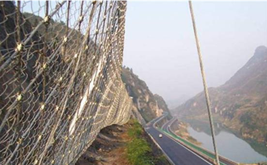 它由8根鋼絲繩(抗拉強(qiáng)度1770 Mpa,斷裂張力>40 kN)制成,節(jié)點(diǎn)處用特殊的"交叉扣"固定。護(hù)坡網(wǎng)作為主要特征部件之一,是通過(guò)主動(dòng)護(hù)坡中的鋼絲繩網(wǎng)來(lái)實(shí)現(xiàn)邊坡加固的。其開(kāi)放性特征可以實(shí)現(xiàn)對(duì)自然植被和坡面植被生長(zhǎng)條件的最佳保護(hù),實(shí)現(xiàn)環(huán)境保護(hù)與災(zāi)害管理的有機(jī)結(jié)合。在被動(dòng)防護(hù)系統(tǒng)中,其靈活的特點(diǎn)充分實(shí)現(xiàn)了對(duì)崩塌和落石的有效攔截。