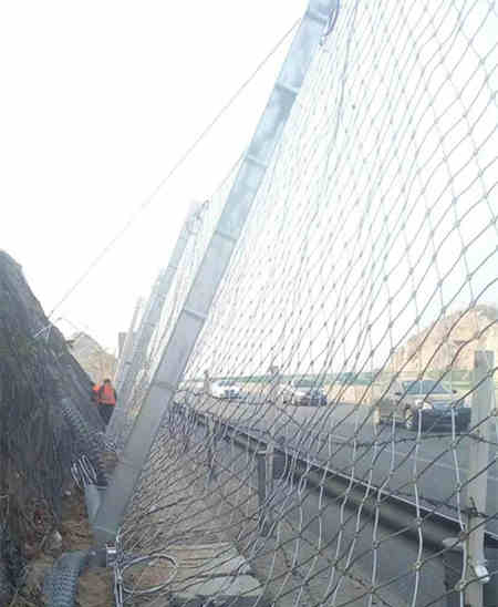 那么在使用過程中會遇到哪些問題,如何處理呢?定期檢查防護(hù)網(wǎng)絡(luò),內(nèi)網(wǎng)和外網(wǎng)是防護(hù)系統(tǒng)中最重要的部件,也是最容易受到外部影響的部分。如果發(fā)現(xiàn)外網(wǎng)撞擊后,三個網(wǎng)眼之間如果存在兩個裂縫,此時護(hù)坡網(wǎng)的防護(hù)效果將大大降低。這時可以選擇同類鋼絲繩進(jìn)行必要的連接、插槽修復(fù),如果損傷程度較重,有必要考慮從零開始鋪設(shè)新的外網(wǎng),選擇更換舊的鋼絲繩網(wǎng)。如果內(nèi)部網(wǎng)格受損,應(yīng)及時修復(fù)受損區(qū)域,當(dāng)內(nèi)部網(wǎng)格損壞到無法連接時,應(yīng)立即從零開始鋪設(shè)新的網(wǎng)格。