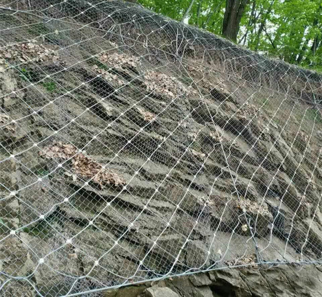 GPS2型護(hù)坡攔石網(wǎng)是以鋼絲繩網(wǎng)為主的各類(lèi)柔性網(wǎng)覆蓋包裹在所需防護(hù)斜坡或巖石上,以限制坡面巖石土體的風(fēng)化剝落或破壞以及危巖崩塌(加固作用),或?qū)⒙涫刂朴谝欢ǚ秶鷥?nèi)運(yùn)動(dòng)(圍護(hù)作用)。