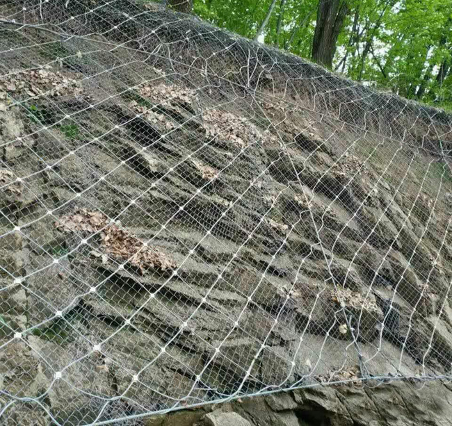 山體攔石專用邊坡防護網(wǎng)是以鋼絲繩網(wǎng)為主的各類柔性網(wǎng)覆蓋包裹在所需防護斜坡或巖石上,以限制坡面巖石土體的風(fēng)化剝落或破壞以及危巖崩塌(加固作用),或?qū)⒙涫刂朴谝欢ǚ秶鷥?nèi)運動(圍護作用)。