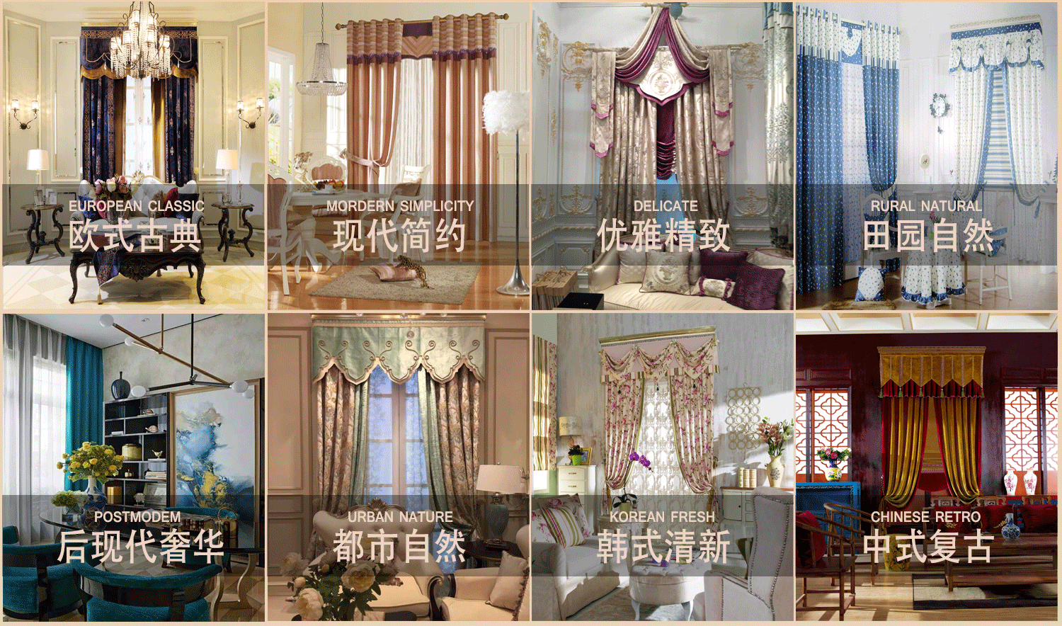 窗簾作為居家必備的裝飾,已經(jīng)越來(lái)越受大眾的關(guān)注和重視。窗簾的種類(lèi)有:開(kāi)合簾、百葉簾、柔紗簾、天棚簾、香格里拉簾等等。窗簾的風(fēng)格有:歐式風(fēng)格,中式風(fēng)格,美式風(fēng)格,新古典風(fēng)格,現(xiàn)代風(fēng)格等等。