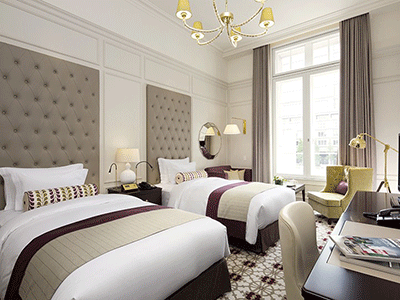 根據(jù)風(fēng)格的不同,窗簾的顏色,也要與房間相協(xié)調(diào),要與室內(nèi)大型家具的色彩一致,或者相互糅合,這樣可以反應(yīng)室內(nèi)色彩風(fēng)格,色彩元素也更和諧統(tǒng)一。有時(shí)候窗簾的選擇,也要與室內(nèi)主色調(diào)相對(duì)比,起到互補(bǔ)的作用,可以平衡室內(nèi)整體空間的色彩,如果家具是深色調(diào)的,就應(yīng)選用較為淺色的窗簾,避免視覺(jué)的重負(fù)荷,給人帶來(lái)一種壓抑感,雖然這樣進(jìn)行裝飾給酒店的成本增大不少,但是也能在一定程度上提升酒店的品質(zhì)。