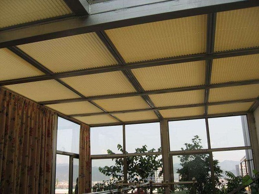 先說說織物遮陽,它近年來新興起的一種節(jié)能遮陽方式,一般作用于陽光房、玻璃幕墻、窗等遮陽,能夠利用有限的空間,為人們創(chuàng)造出一片陰涼之地。在陽光房最常見的織物遮陽就是:蜂巢簾、天棚簾、天幕簾。