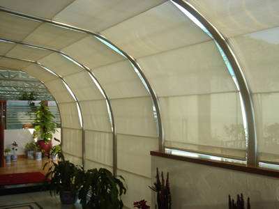 陽光房遮陽產(chǎn)品:電動天棚簾現(xiàn)在大多數(shù)陽光房都安裝的是電動遮陽設(shè)備,既方便又實(shí)用。大多數(shù)電動天棚簾有兩種形式:卷軸式和折疊式,適用于別墅陽光房的玻璃或是大型陽光房使用。使用聚酯纖維面料,具有抗強(qiáng)力撕拉、具有耐酸堿、防腐蝕、防火、抗靜電、不變形、便于清洗等優(yōu)良性能。