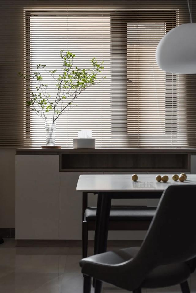 百葉簾比起普通的窗簾,整體視覺(jué)效果要更加簡(jiǎn)潔大方;此外,光線透過(guò)百葉簾的葉片縫隙,可以讓光線像是有韻律般地進(jìn)入室內(nèi),實(shí)現(xiàn)高級(jí)優(yōu)雅的光影效果。