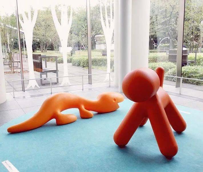 在現(xiàn)實(shí)主義的現(xiàn)代住宅中,“極簡(jiǎn)”的風(fēng)格讓人安靜,因此Eero Aarnio還設(shè)計(jì)了許多動(dòng)物造型的雕塑藝術(shù)作品,鮮艷的色彩和充滿童趣的造型,為這個(gè)家增添輕松愉悅的氛圍。