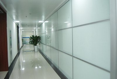 雙層磨砂玻璃隔斷墻可采用橫檔式分隔,展現(xiàn)現(xiàn)代高雅的辦公環(huán)境,磨砂玻璃帶來的渲染效果,使得在辦公勞累時(shí)能帶給人一種清新、幽雅的感覺。