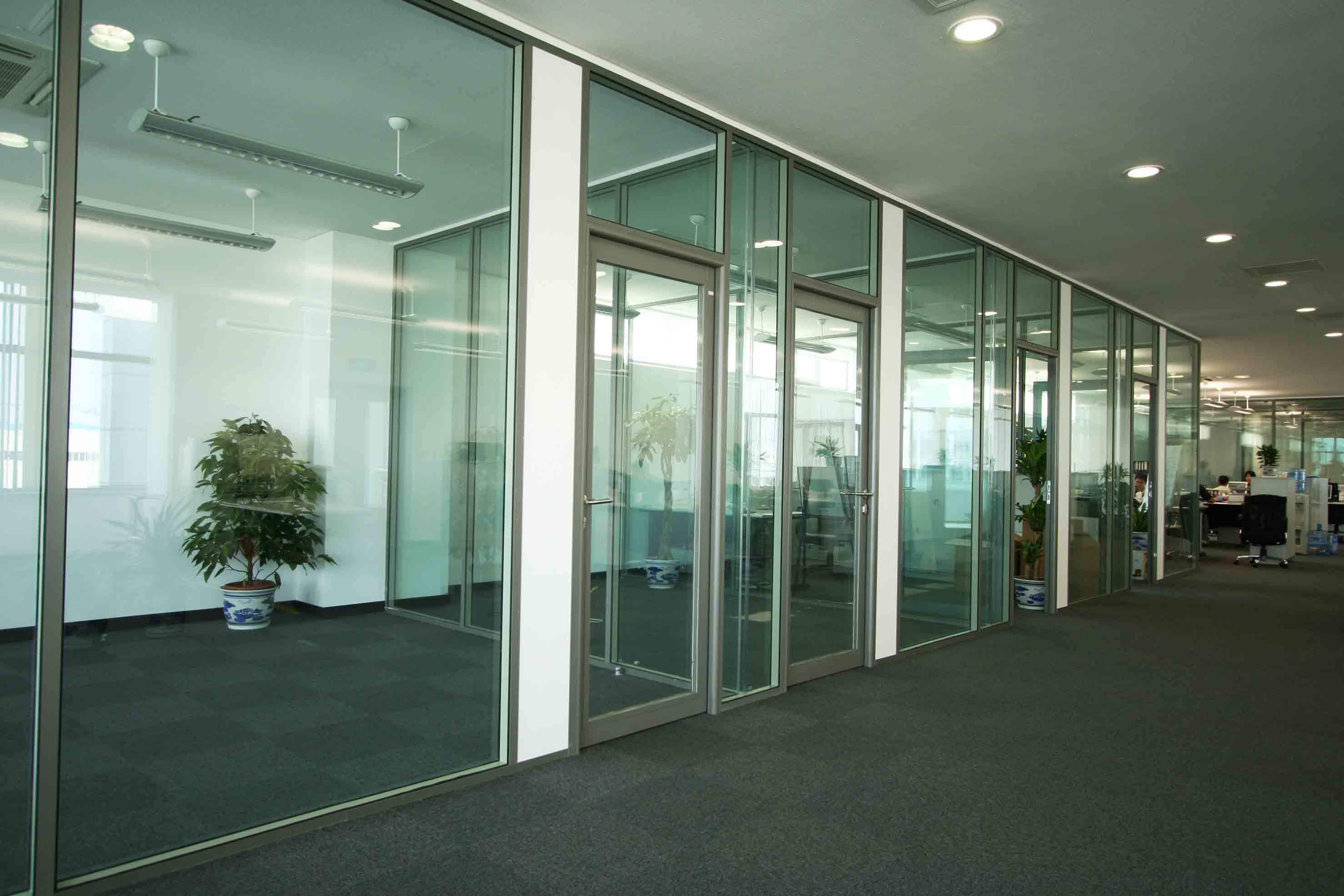 玻璃隔斷墻大多應(yīng)用在辦公室中,一個目的是為了合理的安排空間分割,另一個則是增加美觀度。因為現(xiàn)在玻璃隔斷的形式多樣,有磨砂玻璃隔斷等,適用搭配整體裝修,且成本較低。玻璃隔斷墻的一大特點是采光性好,在辦公環(huán)境是最好的選擇,且隔音也較好。