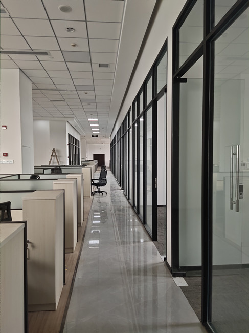 4.大多玻璃隔斷為了安全保障,會使用鋼化玻璃,鋼化玻璃與普通玻璃的差別是鋼化玻璃其實是一種預(yù)應(yīng)力玻璃,為提高玻璃的強度,通常使用化學(xué)或物理的方法,在玻璃表面形成壓應(yīng)力,玻璃承受外力時首先抵消表層應(yīng)力,從而提高了承載能力,增強玻璃自身抗風(fēng)壓性,寒暑性,沖擊性等。而且鋼化玻璃打碎后對人體的傷害要比普通玻璃少很多,危險性小。鋼化玻璃一般為5MM—6MM的鋼化玻璃,實用,美觀,性價比高。