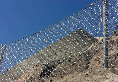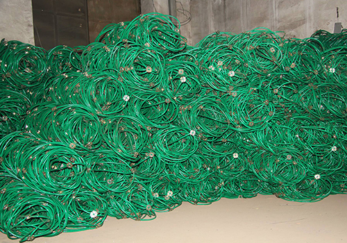 用數(shù)股鋼絲盤結(jié)成環(huán)形相互套接而形成的網(wǎng),