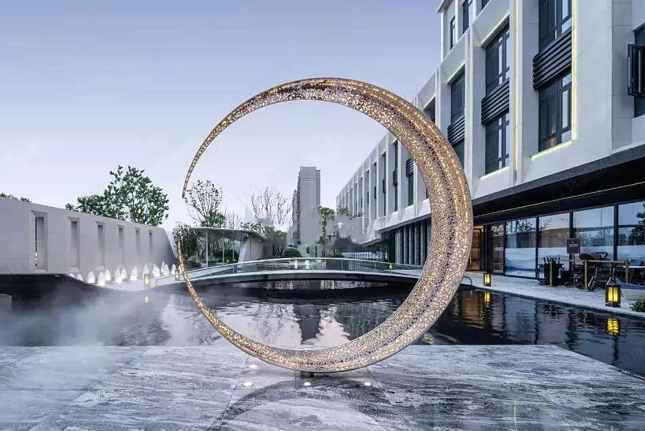 現(xiàn)代許多抽象雕塑,以其形體的簡(jiǎn)明和空間意向強(qiáng)而具有很強(qiáng)的與環(huán)境的融合性和奪目性,不以描繪具體物象為目標(biāo)的抽象藝術(shù)通過(guò)線條、塊面、形體、材質(zhì)等來(lái)傳達(dá)各種情緒,激發(fā)人們的想象,啟迪人們的思維。