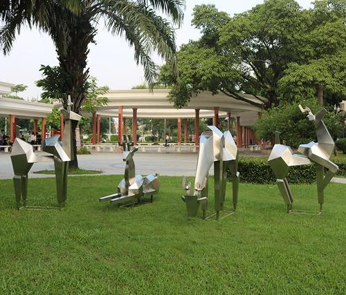 幾何雕塑藝術(shù)給人一種簡約、快速的感覺。在生產(chǎn)上,它比不規(guī)則雕塑更簡單、更容易操作。豐富多變的造型形態(tài)是幾何元素完善上述領(lǐng)域的重要特性,這種多樣性可以從形態(tài)萬千的客觀存在中看出來。幾何雕塑是公共環(huán)境不可缺少的一部分。