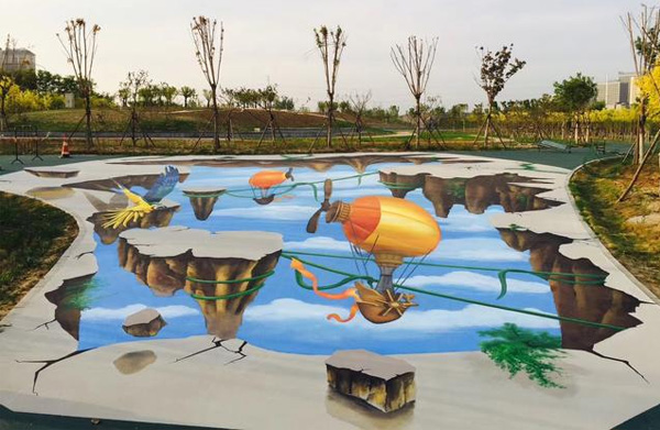 3D街頭地畫可看作這一藝術(shù)邏輯在當(dāng)代的重要發(fā)展和延伸。所謂3D街頭地畫,顧名思義就是將畫作展示于地上以求得立體的藝術(shù)效果,或直接以地面為載體進(jìn)行繪畫創(chuàng)作。