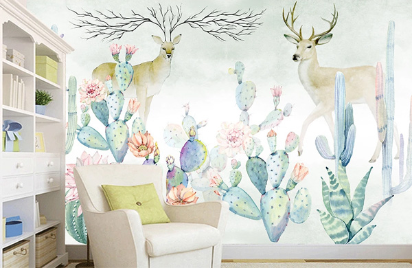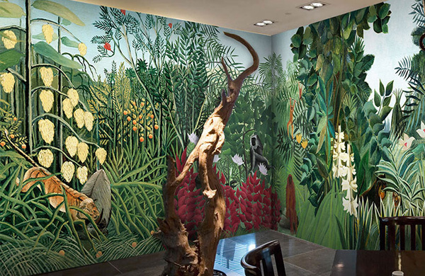 用手繪出的植物圖案恐怕是最流行的墻面手繪圖案了。其中,東南亞風(fēng)格一直是居室潮流的熱點,無論是充滿神秘色彩的泰國飾品,還是鮮艷奔放的印度圖案,都是當(dāng)前裝飾中常見的元素。同樣,帶有這個區(qū)域典型特征的圖案,如大片綠色的植物、海草、貝殼、翠綠欲滴的芭蕉等,都成為了裝飾中的寵兒。畫面上則講究層次感、飄逸,略帶女性的嬌柔。