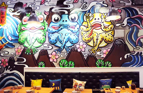 墻繪藝術(shù)結(jié)合了歐美的涂鴉,被眾多前衛(wèi)設(shè)計師帶入了文化設(shè)計中,形成了獨具一格的風(fēng)格。越來越多的人追求潮流的事物,涂鴉以其沖出畫框的自由、浪漫、舒展、環(huán)保且個性化的美感語言被人們所接受。以其不可重復(fù)的獨創(chuàng)性,形式多樣的藝術(shù)傳達(dá)形式,還有其彰顯個性、時尚又不乏創(chuàng)意的娛樂精神,得到人們的喜愛。而隨著城市的發(fā)展,涂鴉也逐漸藝術(shù)化和商業(yè)化,它不僅見證著城市的變遷,也在成為城市建筑中一道新的風(fēng)景。