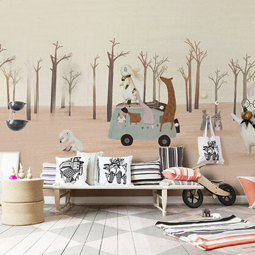 墻畫并不局限于家中的某個位置,客廳、臥室、餐廳甚至是衛(wèi)生間都可以選擇,一般來說,現(xiàn)今居室內(nèi)選擇作為電視背景墻、沙發(fā)墻和兒童房裝飾的較多。墻畫風(fēng)格有中華風(fēng)情、北歐簡約、田園色彩、卡通動漫等多種選擇。如果是選擇一面比較主要的墻大面積地繪制,這種手繪墻畫就是作為家里的主要裝飾物出現(xiàn)的,高大挺拔的樹枝、酷感十足的幾何造型,都會給訪客帶來非常大的視覺沖擊,效果突出。