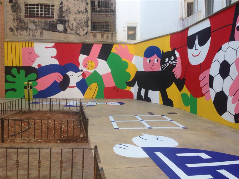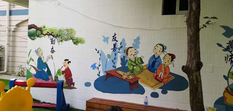 幼兒園墻體彩繪又稱幼兒園墻畫,是近年來幼兒園裝飾墻中用手繪涂鴉表現(xiàn)的最普遍方式,有的地方則明文規(guī)定幼兒園必需畫卡通圖案來作外墻裝飾。