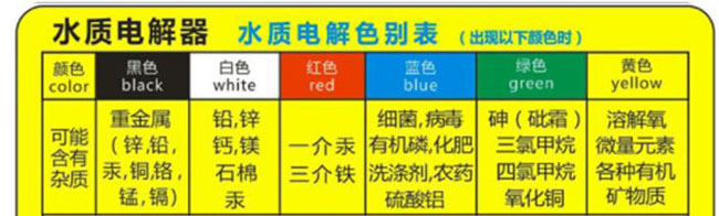 電解器水質(zhì)檢驗法也稱固體沉淀促進儀檢驗法是美國食品醫(yī)藥管理局( F.D.A ),認定用來對已經(jīng)被污染的水進行基本判定的簡易的水質(zhì)檢測方法,對于需要檢驗水源純凈時很有實際意義,可使用戶清楚、直觀地看到自己日常所飲用水的實際情況。